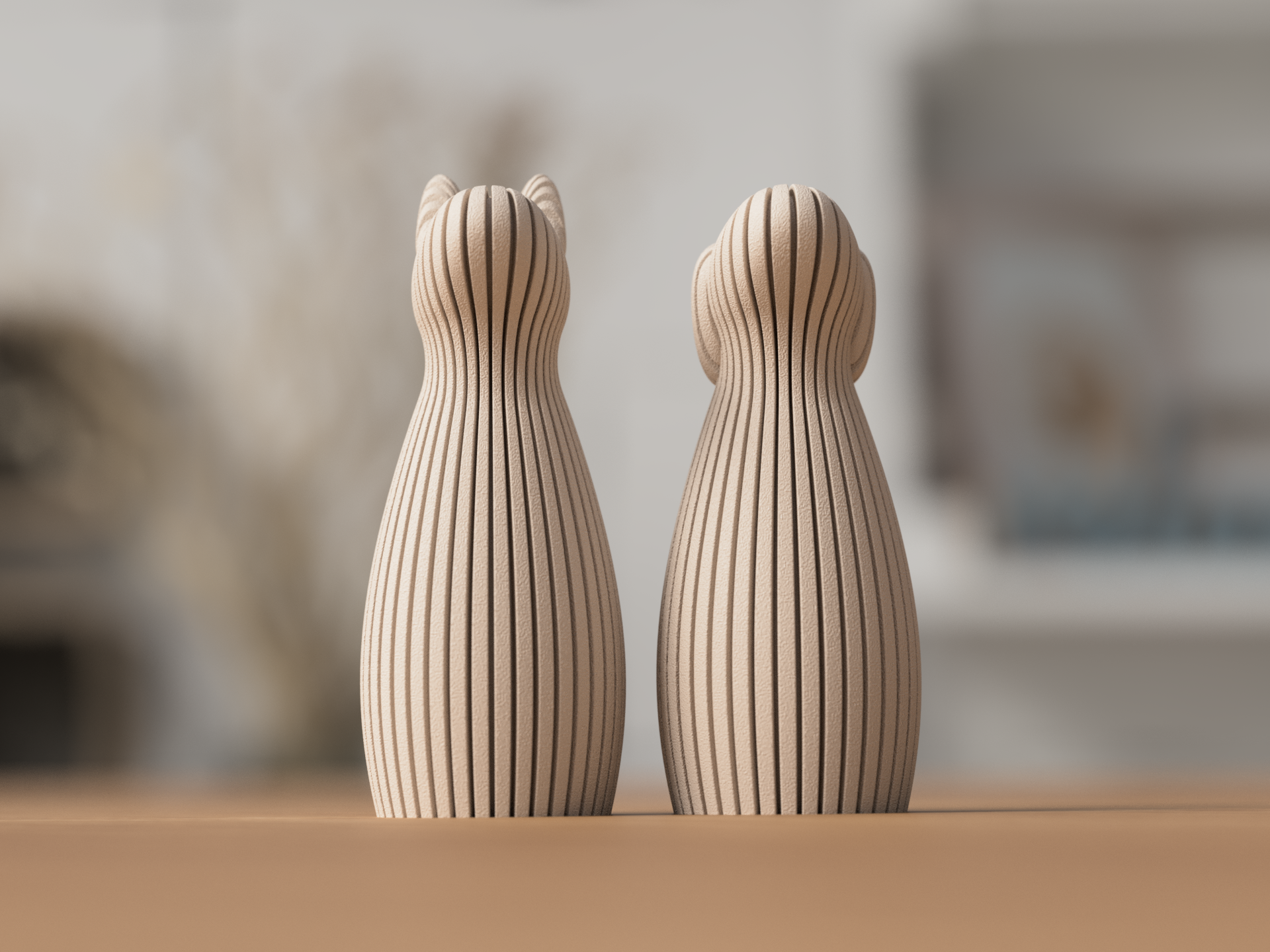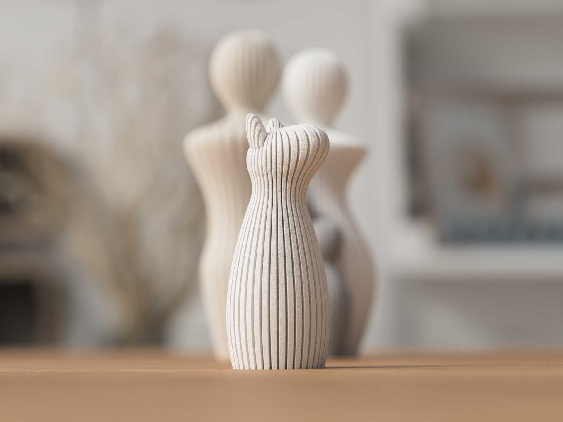 Den karakteristiska räfflade ytan ger skulpturen ett modernt och stilfullt uttryck som harmoniserar perfekt med de andra figurerna i serien. De enkla linjerna och den minimalistiska silhuetten gör den tidlös och passar både moderna och nordiska inredningar.
