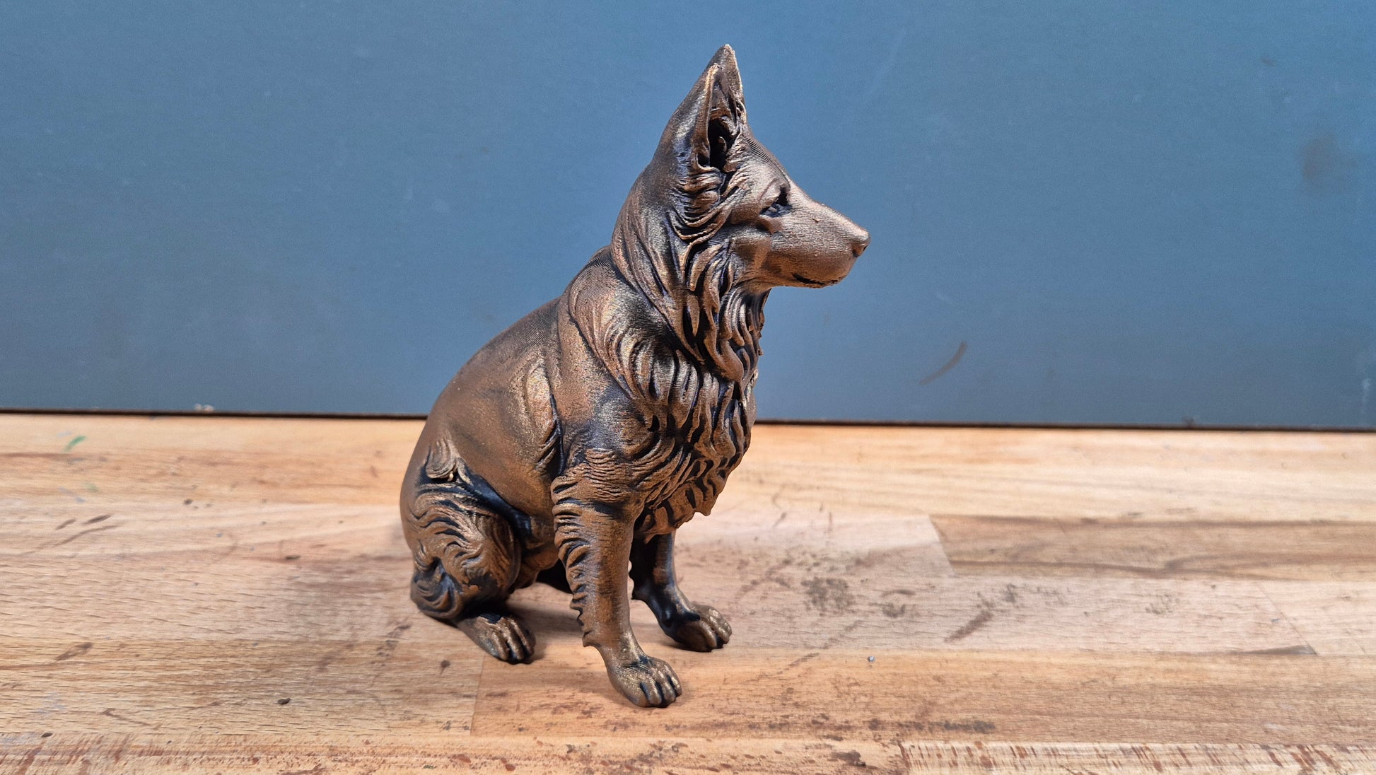 Schäfern är en av världens mest populära hundraser och är känd för sitt nära band till människor och sin mångsidighet som familjehund, servicehund och arbetshund. Denna figurin fångar den styrka, lojalitet och värdighet som kännetecknar rasen. Den fungerar perfekt som en dekorativ prydnad i hemmet, där den kan placeras på en hylla, bokhylla eller skrivbord och ge personlighet och karaktär till rummet.