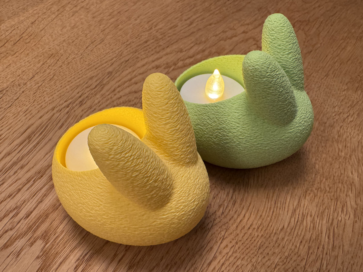 Inspirerad av en söt påskhare med de karakteristiska långa öronen. Passar till elektroniska värmeljus upp till 39,5 mm. Använd endast LED-lampor! Riktiga ljus kan smälta materialet.