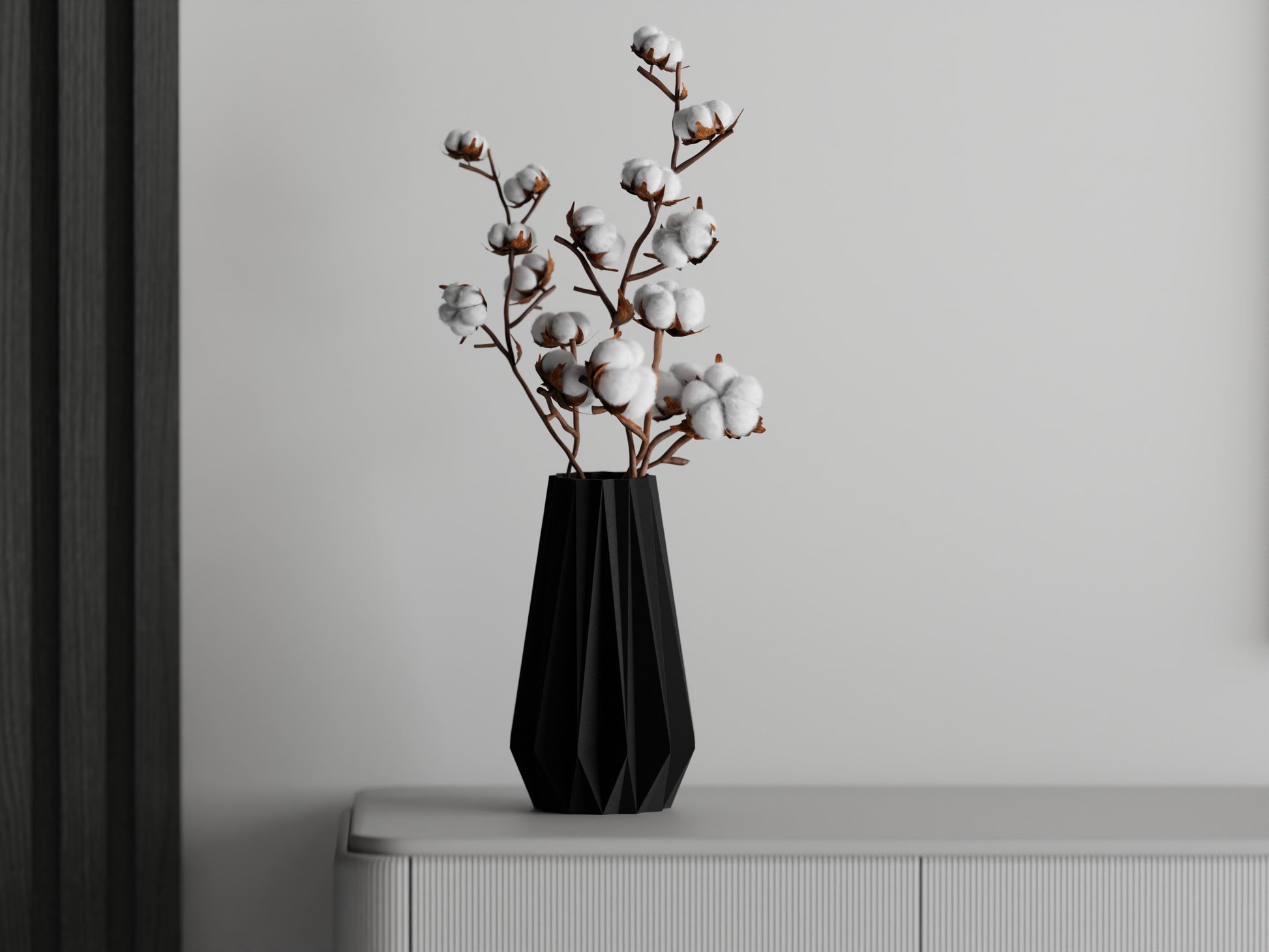 Denna vackra Ribs Triangle-vas är designad med skarpa geometriska linjer och ett minimalistiskt uttryck som ger en modern touch till alla utrymmen. Vasen är 3D-printad i ett slitstarkt material som kombinerar lätthet och robusthet, vilket gör den perfekt som dekoration i både hemmet och på kontoret.